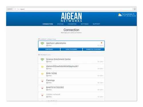 This is Aigean’s newest and most capable Wi-Fi client featuring high powered dual-band connectivity. From the attractive, powder coated case to the elegant and intuitive firmware, this is perfect for vessels of all types and sizes. Top-tier performance and years of service are guaranteed with the use of the highest quality components and inclusion of industry trusted Comrod antennas. This features a robust power regulation system that allows efficient operation from 12 to 35 Volt DC. Additionally, a unique mounting system makes it easy to attach to any surface.